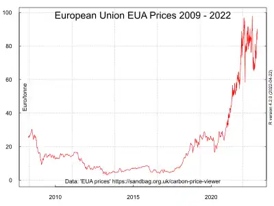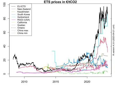 Um estudo de 2020 concluiu que o Sistema de Comércio de Emissões da União Europeia reduziu com sucesso as emissões de CO2 ainda que os preços para o carbono estivessem baixos.[48]
