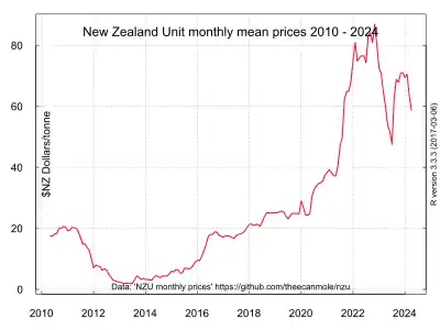 - «New Zealand Units (NZUs)». Climate change information New Zealand. Ministry for the Environment, NZ Government (www.climatechange.govt.nz). 18 de junho de 2010. Consultado em 13 de agosto de 2010.