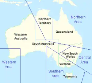 ![]() Fronteiras provisórias dos Comandos de Área da RAAF, em Fevereiro de 1940 | |
