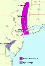 Novos Países Baixos (magenta) e Nova Suécia (azul)