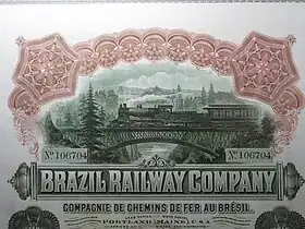 Já no início do século XX surge uma outra companhia de valor histórico significativo: a "Brazil Railway Company", que apenas 10 anos depois de sua fundação em 1906, já detinha cerca de 47% das ferrovias brasileiras, sendo suas realizações amplamente documentadas.[8] Apesar disso, a Brazil Railway Company, começou a enfrentar problemas a partir de 1917. Suas subsidiárias começaram a entrar em regime de concordata e depois de alguns escândalos envolvendo ações administrativas protagonizadas por uma de suas subsidiárias, a "Southern Brazil Lumber & Colonization Company", ela acabou sendo completamente nacionalizada em 1940.[9]