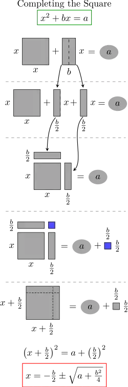 O resultado do preenchimento do quadrado pode ser escrito como uma fórmula. Para o caso geral:[1]