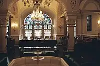 Um meio piso superior alberga o gabinete e sala de conferências, o secretariado de Farah Diba, além de salas e quartos de dormir do pessoal de serviço. Na área da escadaria também se encontra uma sala onde são mantidos os uniformes e ordens de Mohammad Reza.