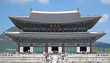 Geunjeongjeon (coreano: 근정전; Hanja: 勤政殿), também conhecido como Geunjeongjeon Hall, é a sala do trono onde o rei concedeu formalmente audiências a seus oficiais, deu declarações de importância nacional e cumprimentou enviados e embaixadores estrangeiros durante a dinastia Choson[15]. O edifício foi designado Tesouro Nacional da Coreia nº 223 em 8 de janeiro de 1985.