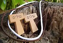 Os membros da Comunidade Católica Shalom, depois de experiência de no mínimo dois anos como postulante ao ingresso no quadro de membros, recebem um sinal "Tau", décima nona letra do alfabeto grego, em forma de cruz, feito de madeira e com inscrição Shalom em hebraico.[12]