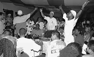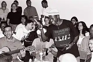 Um dia, os fundadores[21] da comunidade se reuniram para bater um papo, conversar a respeito de samba. Começaram às oito horas da noite e terminaram às quatro horas da manhã. Combinaram de se reunir na semana seguinte, com a ideia de cantar sambas clássicos e algumas de suas composições. O negócio ficou tão bom, que de novo entraram madrugada adentro.