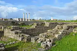 Os romanos trouxeram com eles novos elementos da engenharia civil: o mármore, a coluna, o estuque, a argamassa de cal e a pedra esquadriada. Isto, aliado à vinda de novos conceitos e métodos acelerou o crescimento do assentamento e criou um sincretismo arquitectónico entre a antiga tradição local e a hodierna romana.