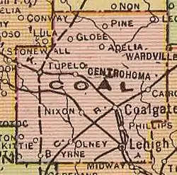 Mapa do condado de Coal, Oklahoma, em 1909