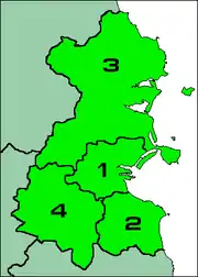 Além da cidade de Dublin, que já detinha status administrativo especial desde 1898 e pode-se considerar um condado de pleno direito (county-borough), foram criados três novos condados para fins administrativos em 1994: Fingal a norte, Dublin meridional a sudoeste e Dun Laoghaire-Rathdown a sudeste.
