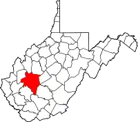 | Localização do Condado de Kanawha na Virgínia Ocidental | |