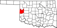 | Localização do condado de Roger Mills no Oklahoma | |