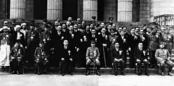 Mas apesar de toda a sua conversa pan-asiática sobre a criação de uma Esfera de Co-prosperidade da Grande Ásia Oriental, onde todos os povos asiáticos viveriam juntos como irmãos e irmãs, na realidade, como mostra o documento de planeamento de Julho de 1943, Uma Investigação da Política Global com a Raça Yamato como Núcleo, os japoneses se viam como a "Grande Raça Yamato" racialmente superior, que estava naturalmente destinada a dominar para sempre os outros povos asiáticos racialmente inferiores. [13] Antes da Conferência do Grande Leste Asiático, o Japão tinha feito vagas promessas de independência a várias organizações anticoloniais pró-independência nos territórios que tinha invadido, mas, à parte uma série de estados fantoches óbvios criados na China, essas promessas não foram cumpridas. realizada. Agora, com a maré da Guerra do Pacífico a virar-se contra o Japão, os burocratas do Ministério dos Negócios Estrangeiros e os apoiantes da filosofia pan-asiática dentro do governo e das forças armadas impulsionaram um programa para garantir a rápida "independência" a várias partes da Ásia numa esforço para aumentar a resistência local aos Aliados e desencadear o regresso destes últimos e para aumentar o apoio local ao esforço de guerra japonês. A liderança militar japonesa concordou em princípio, compreendendo o valor propagandístico de tal medida, mas o nível de “independência” que os militares tinham em mente para os vários territórios era ainda menor do que o de Manchukuo. Vários componentes da Esfera de Co-Prosperidade do Grande Leste Asiático não estavam representados. No início de 1943, os japoneses estabeleceram o Ministério da Grande Ásia Oriental para conduzir relações com os estados supostamente independentes da "Esfera de Co-Prosperidade da Grande Ásia Oriental". [14]