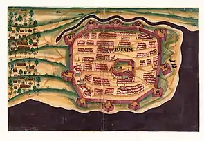 Por desejar fazer a peregrinação a Meca, a tia do imperador Akbar, Gulbadan Begum, entregou Bulsar, a norte de Damão, aos portugueses em 1572 enquanto esperava por um cartaz em Surrate, a fim de garantir uma passagem segura e célere.[10][11] Ao regressar e já não necessitando de manter boas relações com os portugueses, exigiu que Bulsar fosse reconquistada e prontamente foram enviadas de Surrate tropas mogores para ocupar a cidade, mas foram rechaçadas pelos portugueses com perdas consideráveis.[10][11]