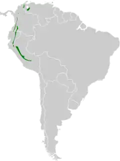 Pode ser encontrada nos seguintes países: Bolívia, Colômbia, Equador, Peru e Venezuela.[1]