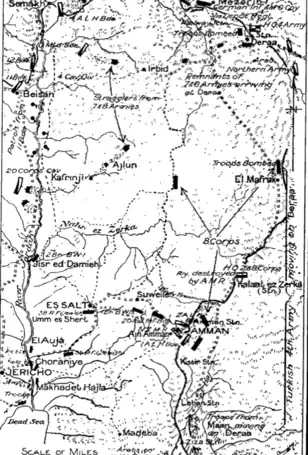 Após tomarem todos os objetivos durante as batalhas de Sarom e de Nablus, quebrando a linha da frente otomana, as tropas do Império Britânico prosseguiram com ataques de flanco com divisões de infantaria, ao mesmo tempo que divisões de cavalaria cavalgaram muitos quilómetros para rodear as forças inimigas. Isso resultou na destruição de dois exércitos otomanos a oeste do rio Jordão e na retirada total de um terço dos soldados otomanos, muitos dos quais foram obrigados a marchar depois do exército xarifal ter cortado o caminho de ferro do Hejaz. Metade das tropas otomanas foram capturadas pela Força de Chaytor. O Grupo de Exércitos Yıldırım (o grupo de exércitos que reunia o conjunto das forças otomanas e germânicas), também perdeu a maior parte dos seus transportes e armas, uma situação que foi agravada com os avanços subsequentes da Força Expedicionária Egípcia.[3]