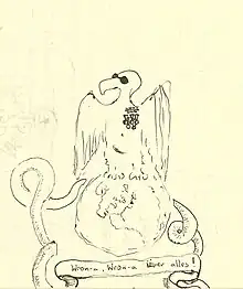 "WRONa, WRONa über alles", um folheto político caricatural da década de 1980. O "Corvo" está usando óculos escuros tal como o General Jaruzelski frequentemente usava.