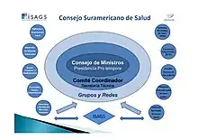 Esquema em espanhol da estrutura institucional da Unasul-Saúde.