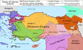No final da guerra, os Aliados ocuparam Constantinopla (Istambul) e o governo otomano entrou em colapso. O Tratado de Sèvres, destinado a reparar os danos causados pelos otomanos durante a guerra aos Aliados vencedores, foi assinado pelo Império Otomano em 10 de agosto de 1920, mas nunca foi ratificado pelo Sultão.