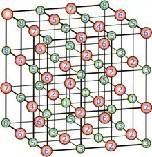 A distância entre vizinhos é a, e então podemos escrever a constante de Madelung para um íon como