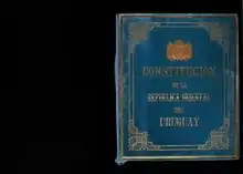 Exemplar da primeira constituição uruguaia exposta no Palácio do Legislativo do Uruguai.