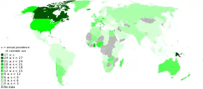 Esta é uma lista do uso anual de cannabis por país por pessoas entre 15-64 anos (ou outras idades indicadas). O indicador de prevalência anual mostra a porcentagem de pessoas que usam a droga por pelo menos uma vez no ano.