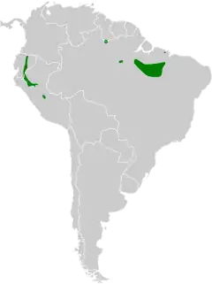 Pode ser encontrada nos seguintes países: Brasil, Equador, Guiana e Peru.[1]