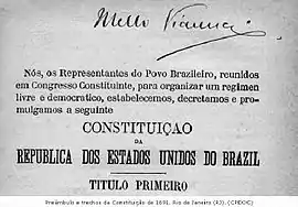 A Constituição da República dos Estados Unidos do Brasil, promulgada em 24 de fevereiro de 1891, introduziu a noção de controle de constitucionalidade das leis a ser exercido pelo Poder Judiciário. Em seu artigo 60, §1º, alínea a, era concedido ao STF competência para julgar os recursos, sempre que se questionasse “sobre a vigência ou a validade das leis federais em face da Constituição”. Assim, a Constituição de 1891 reconhecia que tanto as Justiças da União, quanto as Justiças dos Estados poderiam julgar a legitimidade das leis, ficando ao STF a possibilidade de confirmar ou revogar a decisão através de recurso.