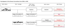Os tratados foram elaborados durante quatro Convenções de Genebra que aconteceram de 1864 a 1949.
