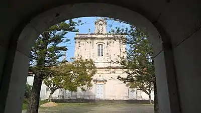 O templo, numa imitação livre da Igreja da Cartuxa de Évora, cuja traça se assemelha à da de Santa Cecilia in Trastevere, em Roma, apresenta uma imponente fachada em pedra de calcário. Não tem torres sineiras, colocando no ponto mais elevado e central, a Virgem com o Menino ("Santa Maria Vallis Misericordiae").