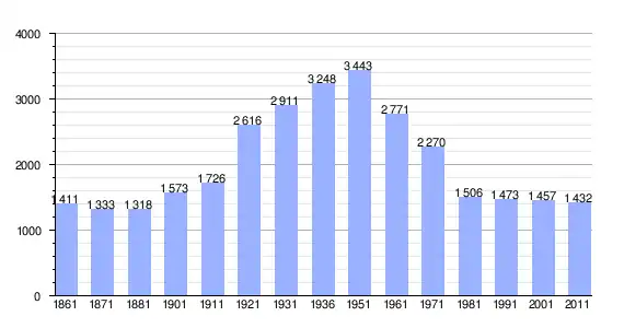 | Variação demográfica do município entre 1861 e 2011[3] |