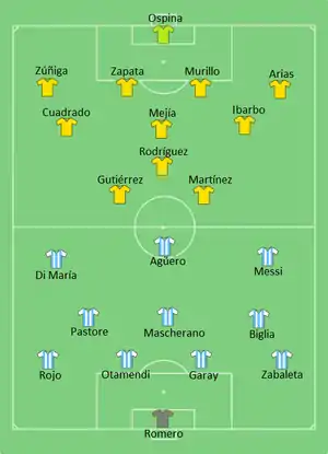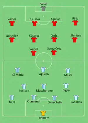 | Messi Garay Banega Lavezzi Biglia Rojo Tévez |