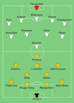 | Willian Marquinhos Philippe Coutinho Roberto Firmino Gabriel Jesus |
