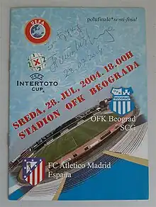 Um autógrafo que Ilija Petković deu na capa do programa do dia do jogo das meias-finais da Taça Intertoto da UEFA de 2004, entre OFK Beograd e Atlético Madrid.
