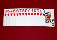 | N° de cartas | 52 cartas (51 ou 54 para 3 ou 6 jogadores, 50 para 5) |