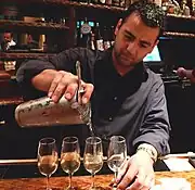 Uma coqueteleira sendo usada em um bar de Nova Orleães.