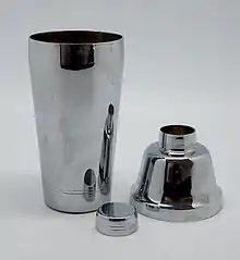 - A coqueteleira Cobbler: uma coqueteleira de três partes que tem um crivo na parte superior e um recipiente para o coquetel, além de uma tampa. A tampa frequentemente é utilizada como medida para destilados e outros líquidos.