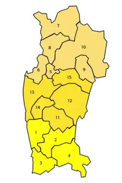Para fins de administração local, as províncias estão divididas em 15 comunas.