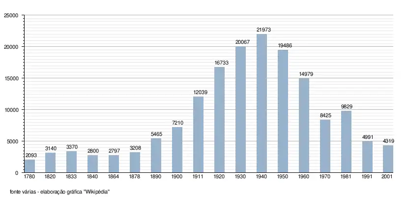 A tendência decrescente na população residente deu-se a partir de 1960, quando o número de habitantes baixou de 19 486 (em 1950) para 14 979 em 1960. De 1970 para 1981, assinalou-se um ligeiro acréscimo, pois, passava de 8 425, para 9 824 residentes.