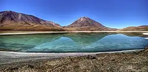 - A Meridional caracterizada por ser vulcânica e por ter tempestades de areia e nevoeiro, conta com o maior vulcão ativo do mundo o Licancabur com uma altura 5.920 m e conter a lagoa mais alta do mundo, nela se encontra também a lagoa Colorada e Verde famosas por suas cores respectivas.