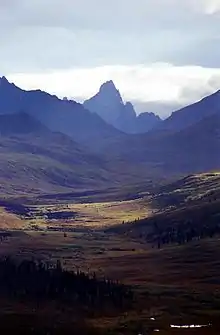 A montanha mais alta é o Mount Frank Rae de 2.362 metros (7.749 pés). As montanhas mais familiares com seus picos de granito irregulares são o Monte Tombstone e o Monte Monolith.