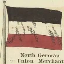 As cores branca e vermelha da antiga Liga Hanseática foram adicionadas, além do preto e branco da Prússia. Embora essa organização medieval internacional de comércio tivesse perdido a sua influência há mais de dois séculos, as cidades-estados de Bremen, Hamburgo e Lübeck, todas antigas Cidades Imperiais Livres, tinham orgulho das suas tradições hanseáticas seculares. O comandante da marinha, príncipe Adalbert da Prússia, advogou fortemente a implementação de uma tricolor combinada do preto e branco prussianos e do vermelho e branco hanseáticos como uma bandeira de guerra e uma insignia civil. Bismarck ("não me importo nem um pouco com essas cores! O que seja, verde e amarelo e dança da alegria, ou a bandeira do Grão-Ducado de Mecklemburgo-Strelitz...") não fez nenhuma objeção.