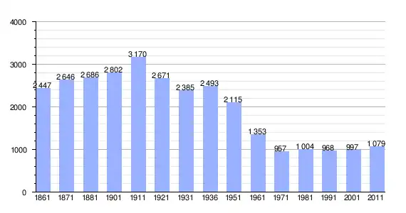 | Variação demográfica do município entre 1861 e 2011[3] |