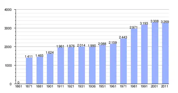 | Variação demográfica do município entre 1861 e 2011[3] |