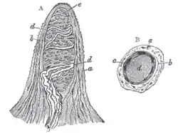 - Photomicrograph of Meissner's corpuscles within the skin (ver micrográfico #3 na página), parte do curso online de histologia da UC Davis.