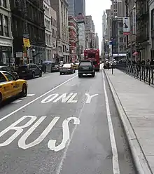 Ruas inteiras podem ser desenhadas como vias bus (como Oxford Street, em Londres, Princes Street, em Edimburgo, ou Fulton Street, no centro de Brooklyn), permitindo apenas ônibus (autocarros), táxis e veículos de entregas (cargas e descargas), e vias bus contrafluxo podem permitir que os ônibus (autocarros) viajem na direção oposta aos outros veículos.[12]