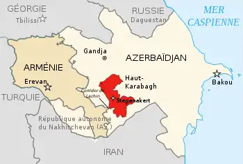 Após o acordo que encerrou o conflito armado no Alto Carabaque que se desenvolveu entre o Azerbaijão e a Armênia em 2020 , o Lachín corredor será responsável por forças de paz da Federação Russa por um período de cinco anos.[1]