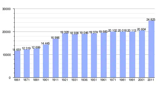 | Variação demográfica do município entre 1861 e 2011[3] |