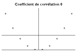 Neste exemplo, o coeficiente de Pearson tem o numerador igual a zero. Portanto, a razão é zero, o que significa inexistência linear. Em cálculo,
