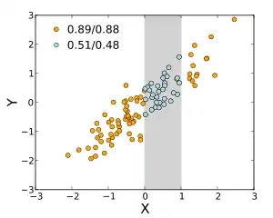 Informalmente correlação é sinônimo de dependência. Formalmente variáveis são dependentes se não satisfizerem a propriedade matemática da independência probabilística. Em termos técnicos, correlação refere–se a qualquer um dos vários tipos específicos de relação entre os valores médios. Existem diferentes coeficientes de correlação ( ou ) para medir o grau de correlação. Um dos coeficientes de correlação mais conhecidos é o coeficiente de correlação de Pearson, obtido pela divisão da covariância de duas variáveis pelo produto dos seus desvios padrão[6] e sensível a uma relação linear entre duas variáveis.[7] Entretanto, há outros coeficientes de correlação mais robustos que o coeficiente de correlação de Pearson. Isto é, mais sensíveis às relações não lineares.[8][9][10]