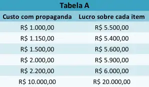 Portanto, com um investimento de 12 mil reais em propaganda no próximo mês, o lucro será de: